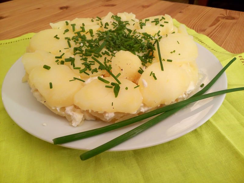Bramborový dort s kozím sýrem a pažitkou (4 porce)