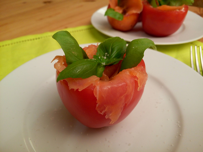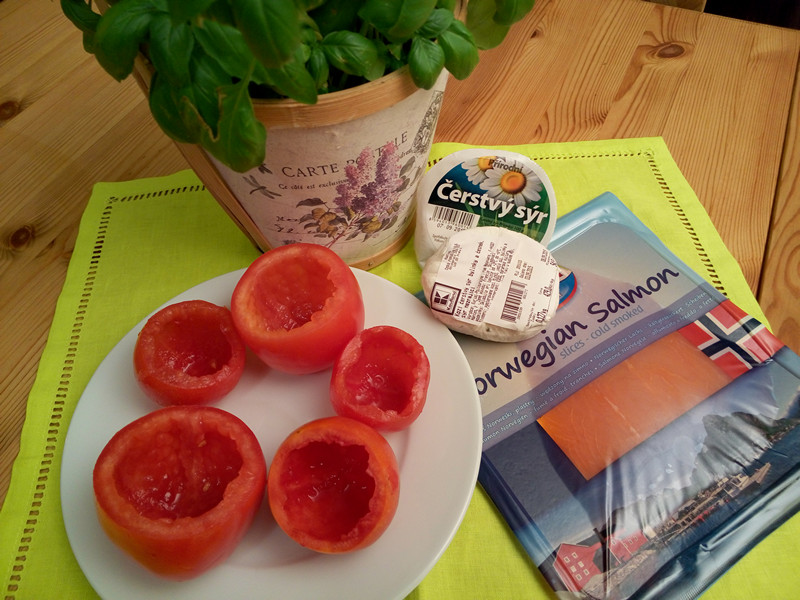 Plněná rajčata s uzeným lososem a bazalkou