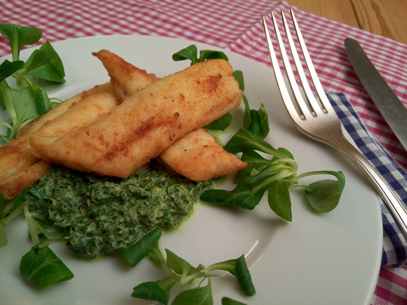 Smažené hranolky z platýse s omáčkou z listové petržele