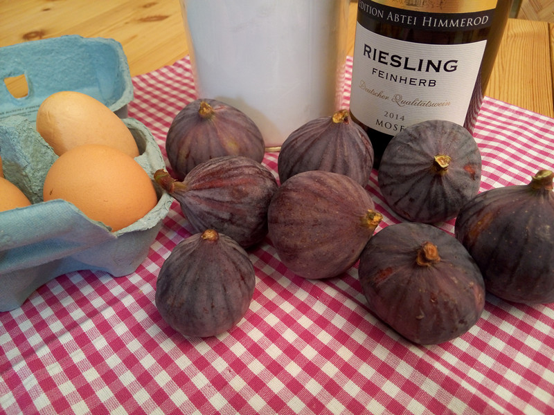 12 čerstvých zralých fíků – 100 g moučkového cukru – 4 žloutky – 2 dcl sladkého nebo polosladkého vína