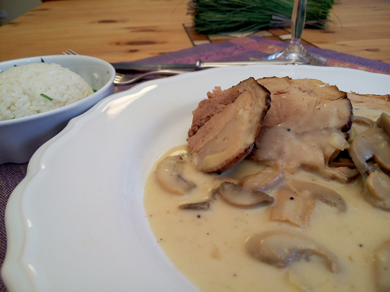 Pečená vepřová plec se žampionovou omáčkou (4 porce)